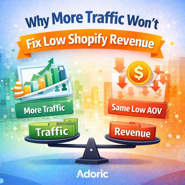 More traffic rarely fixes low Shopify revenue because traffic only affects one part of the revenue equation. If conversion rate and average order value (AOV) are weak, increasing visitors simply multiplies inefficiency. In many cases, improving purchase depth—through strategies like bundles or quantity breaks implemented with tools such as Adoric Bundles Quantity Breaks—has a larger impact on revenue than acquiring more visitors.